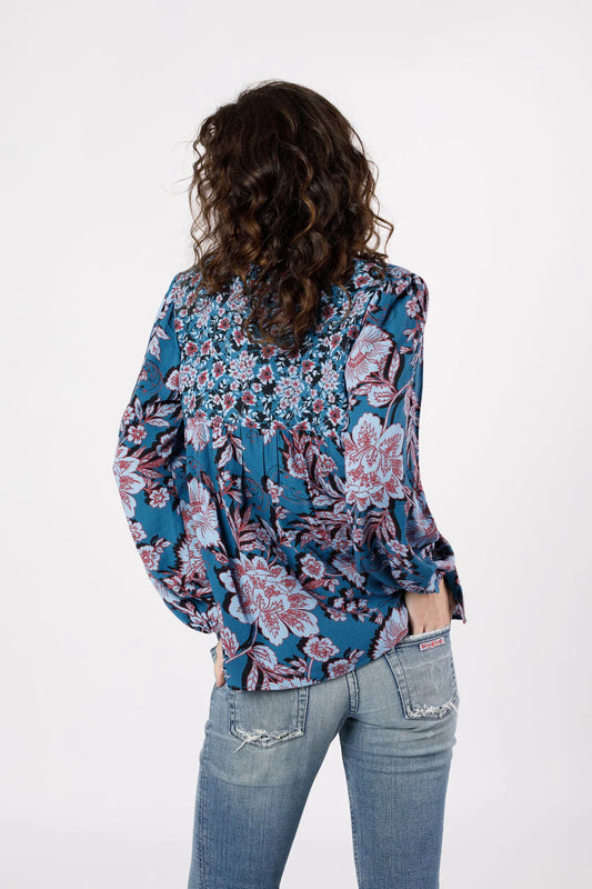 Band of The Free Josie Sapphire Mixed Print Long Sleeve Top