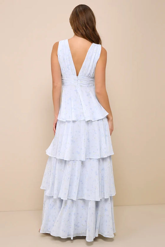 Lulus Amazing Evening Light Blue Floral Tiered Maxi Dress