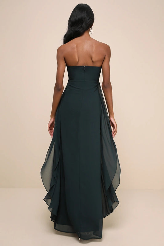 Lulus Intricate Perfection Emerald Green Strapless Ruffled Maxi Dress
