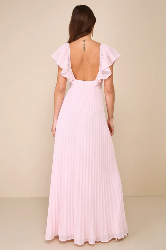Lulus Ideal Occasion Pink Pleated Flutter Sleeve Backless Maxi Dress