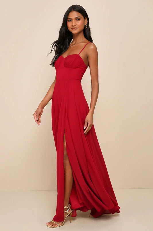 Lulus Cause for Commotion Red Pleated Bustier Maxi Dress